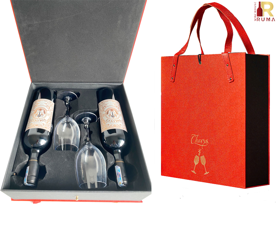 + 1 hộp da Pu cao cấp có khay định hình bên trong kèm 2 ly vang. Kích thước: 36 x 36 x 12 cm