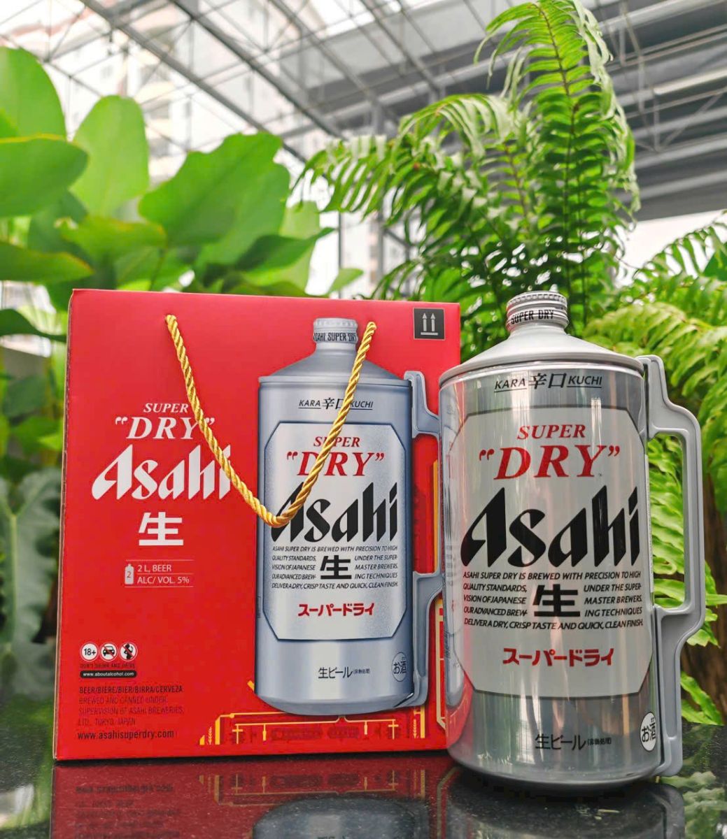 Bom bia Asahi Nhật Bản 2 lít còn được đóng bằng hộp giấy đẹp, sang trọng dạng set 1 bom, 2 bom thích hợp để làm quà tặng đến bạn bè, người thân, khách hàng, đối tác thân thiết.