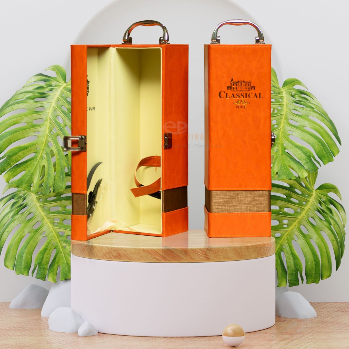 THÔNG TIN HỘP DA ĐỰNG 1 CHAI RƯỢU VANG CAM