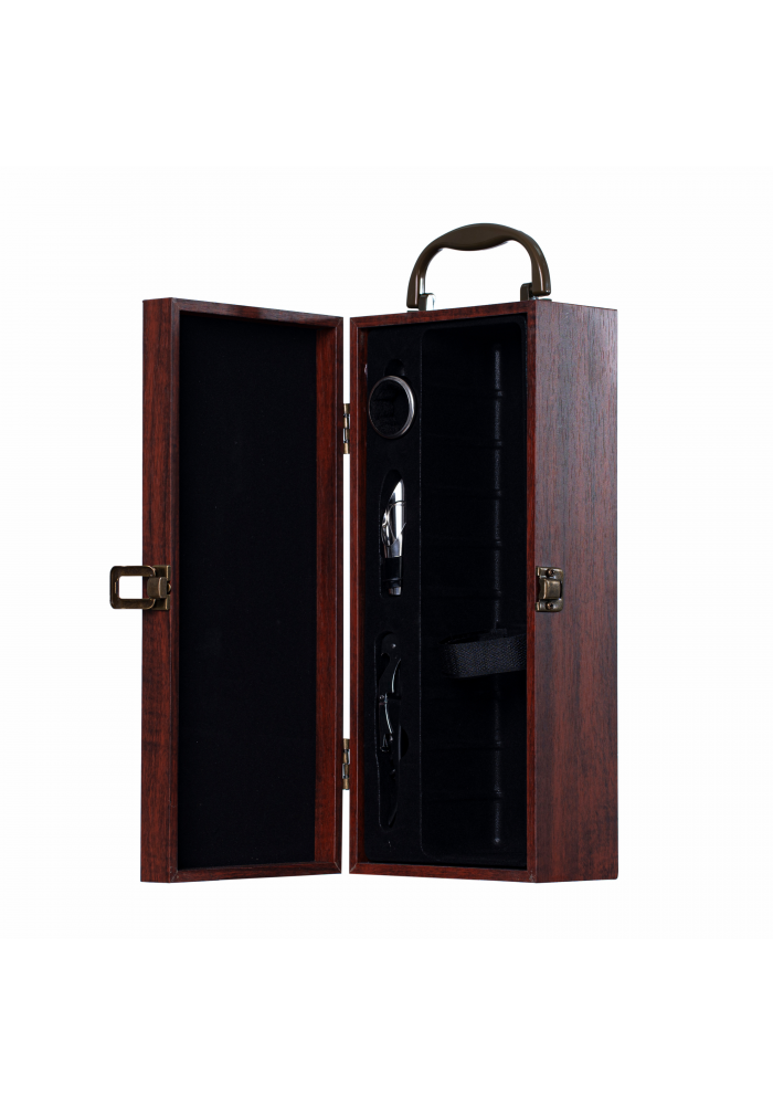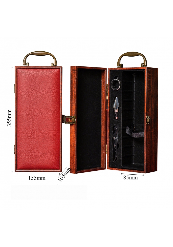 - Hộp da đi kèm bộ dụng cụ khui rượu vang