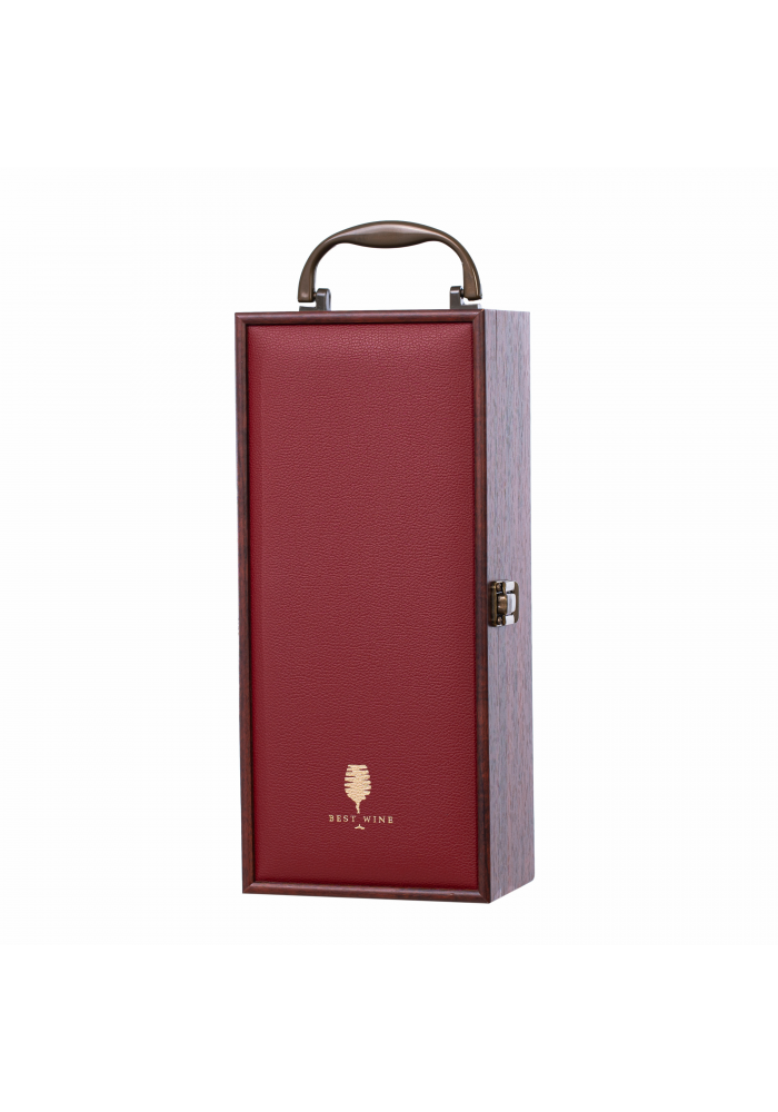 Hộp gỗ đơn mặt da đỏ đựng 1 chai rượu vang