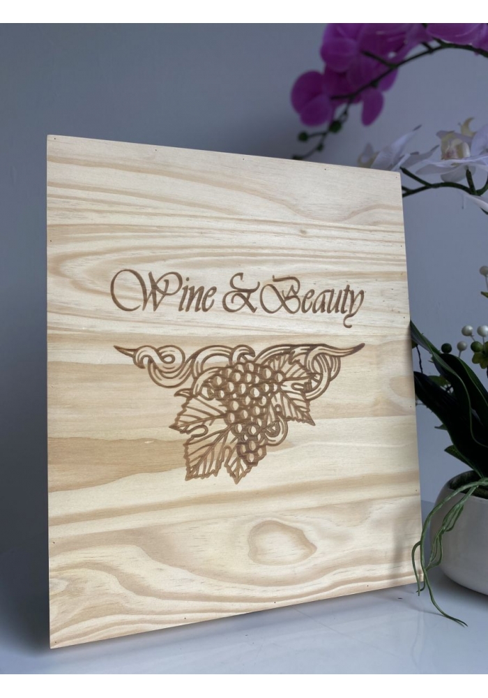 ● Hộp gỗ đựng 3 chai vang Ý (khắc chùm nho): Kích thước: Dài 35 cm x Rộng 33 cm x Cao 10.5 cm.