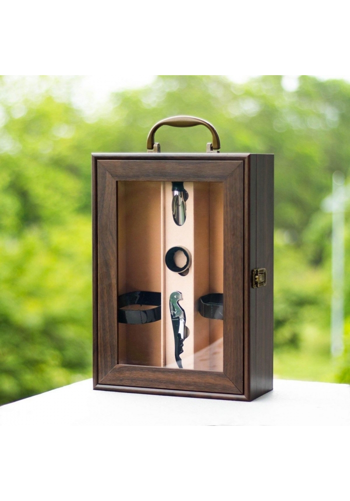 Hộp gỗ mặt kính đựng 2 chai rượu vang