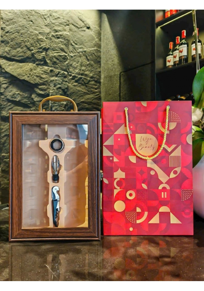 - Phụ kiện: 3 phụ kiện bao gồm khui vang, rót vang và vòng đệm cổ chaI.
