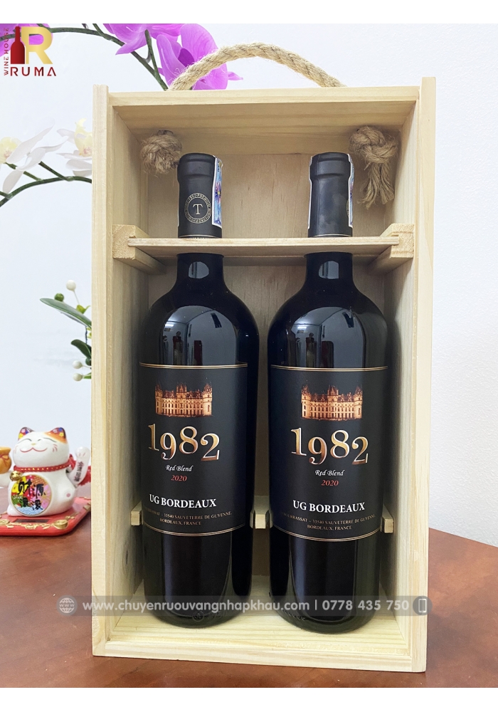 Thông tin set quà tặng cao cấp 2 chai rượu vang Pháp 1982
