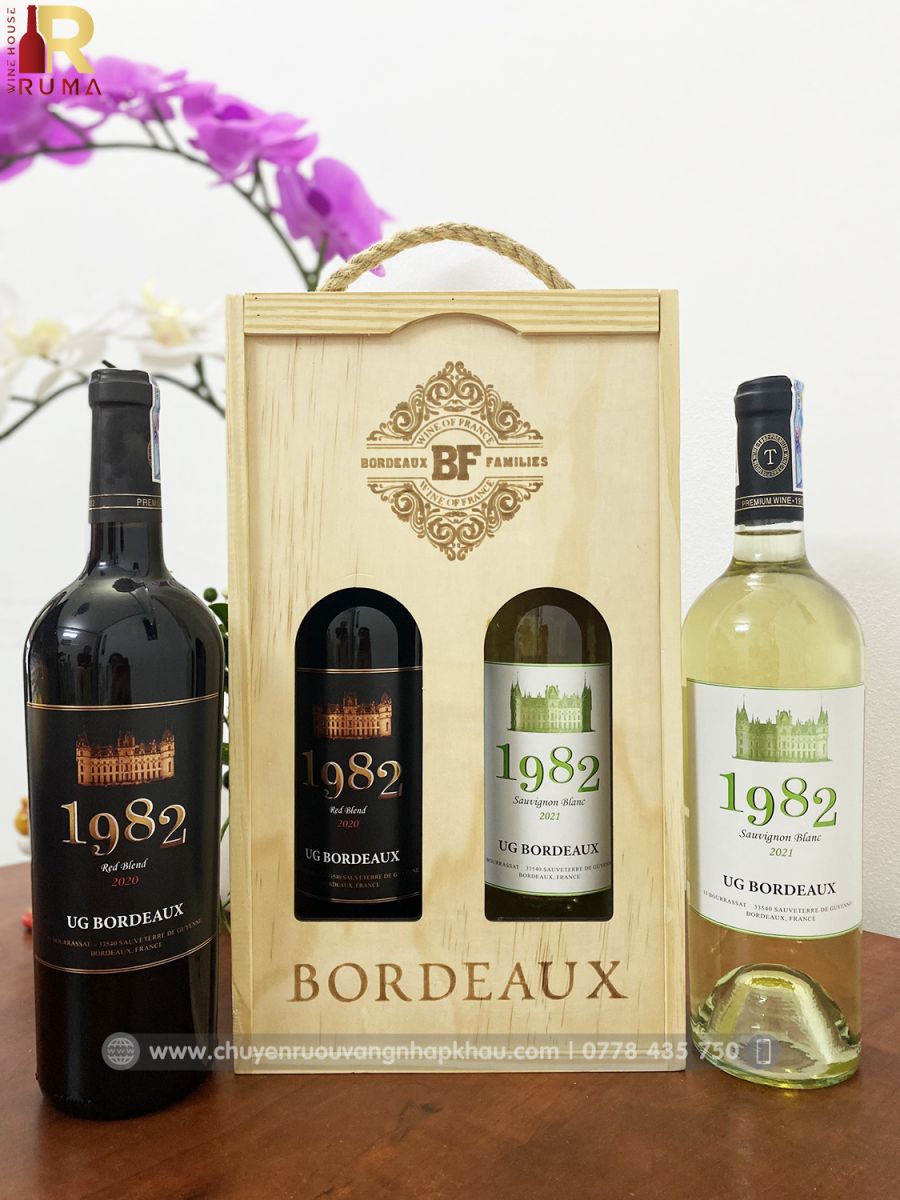 - Set 2 chai vang Pháp 1982 là món quà tăng doanh nghiệp được ưa chuộng hiên nay, trên mỗi set quà có thể khắc logo, tên doanh nghiệp theo yêu cầu làm món quà tặng độc đáo gửi đến đối tác, khách hàng, bạn bè thân thiết.
