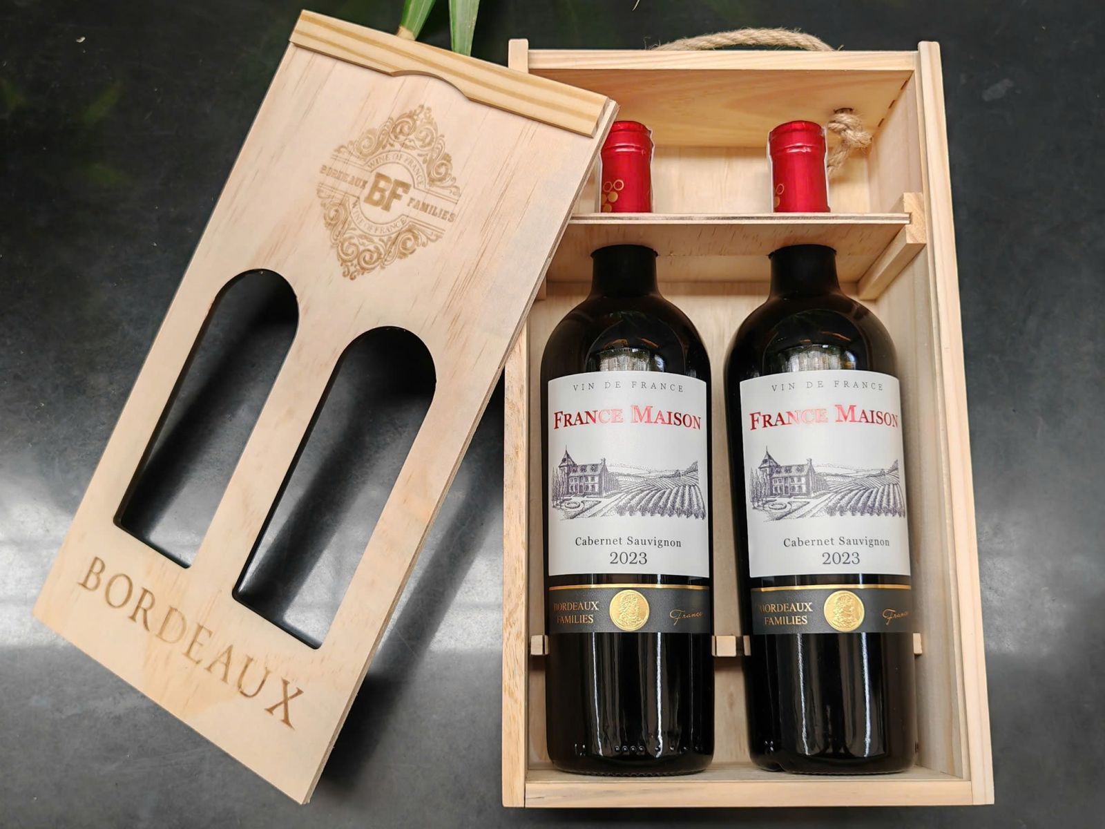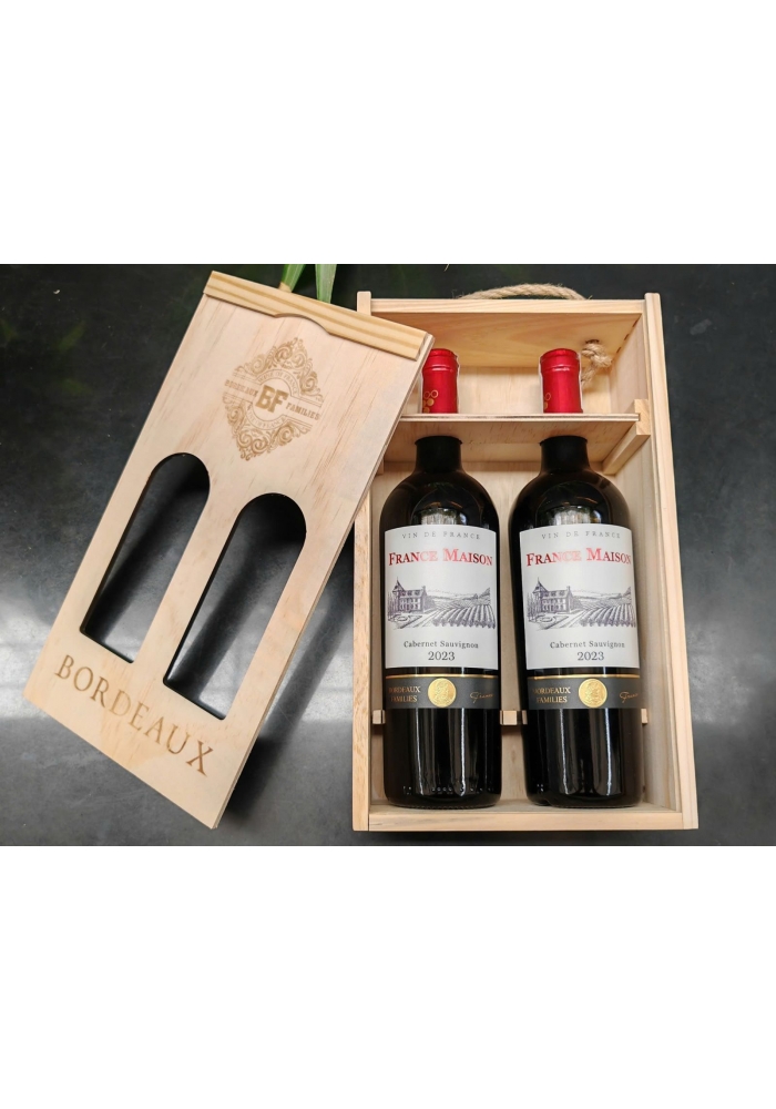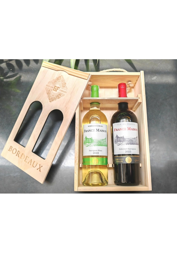 Phần quà tặng cao cấp 2 chai rượu vang Pháp France Maison gồm: