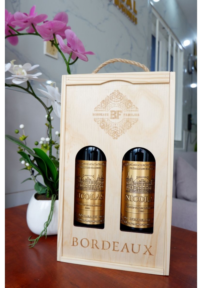 Phần quà tặng cao cấp 2 chai vang Pháp Nicolas gồm: