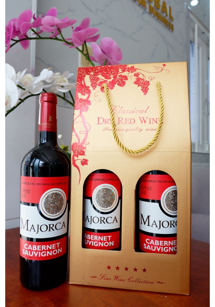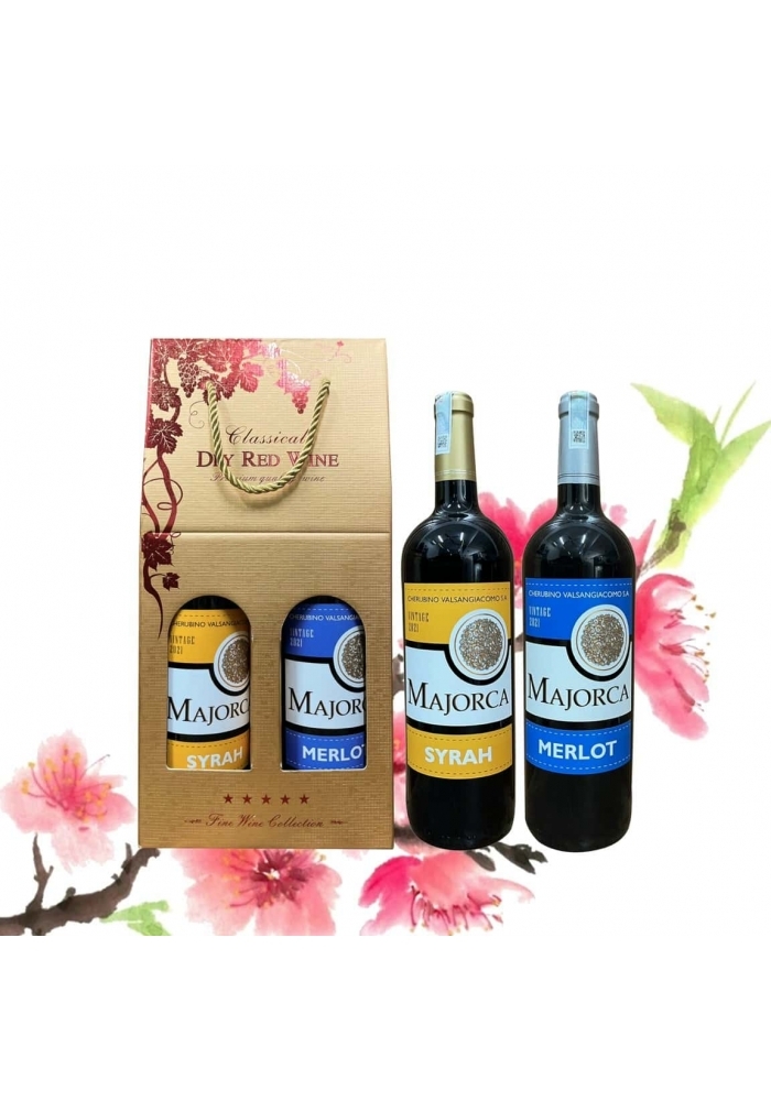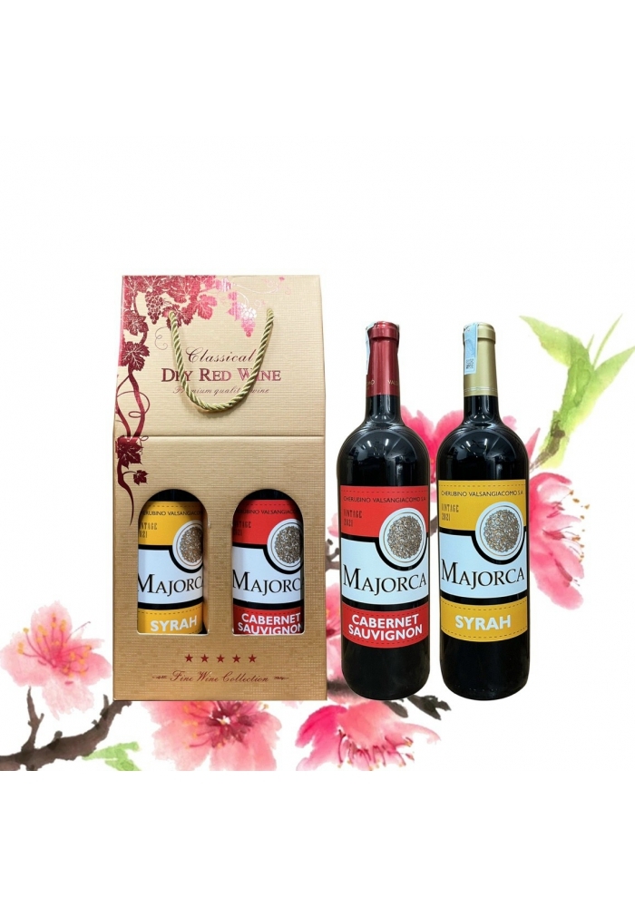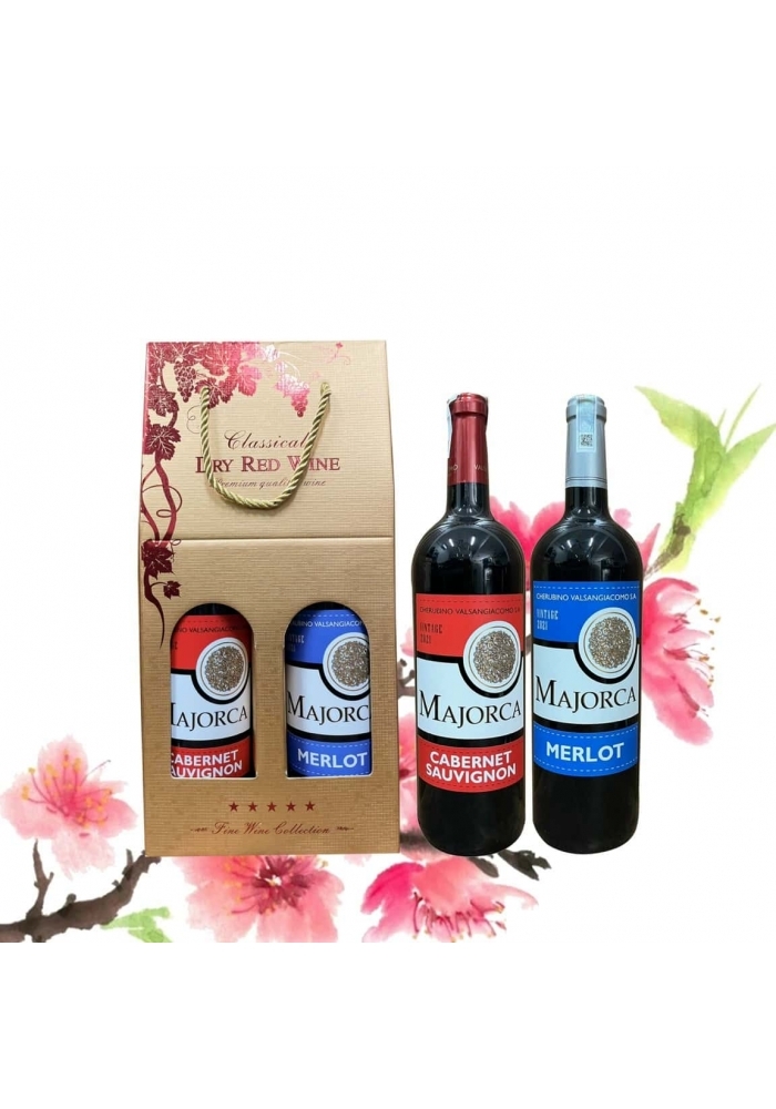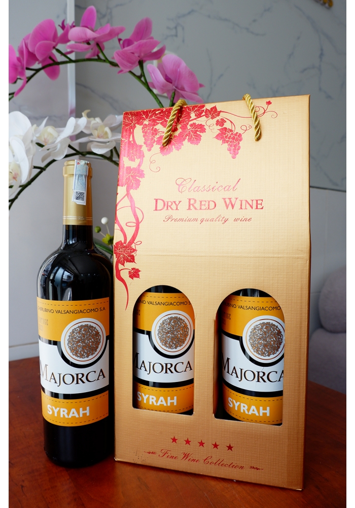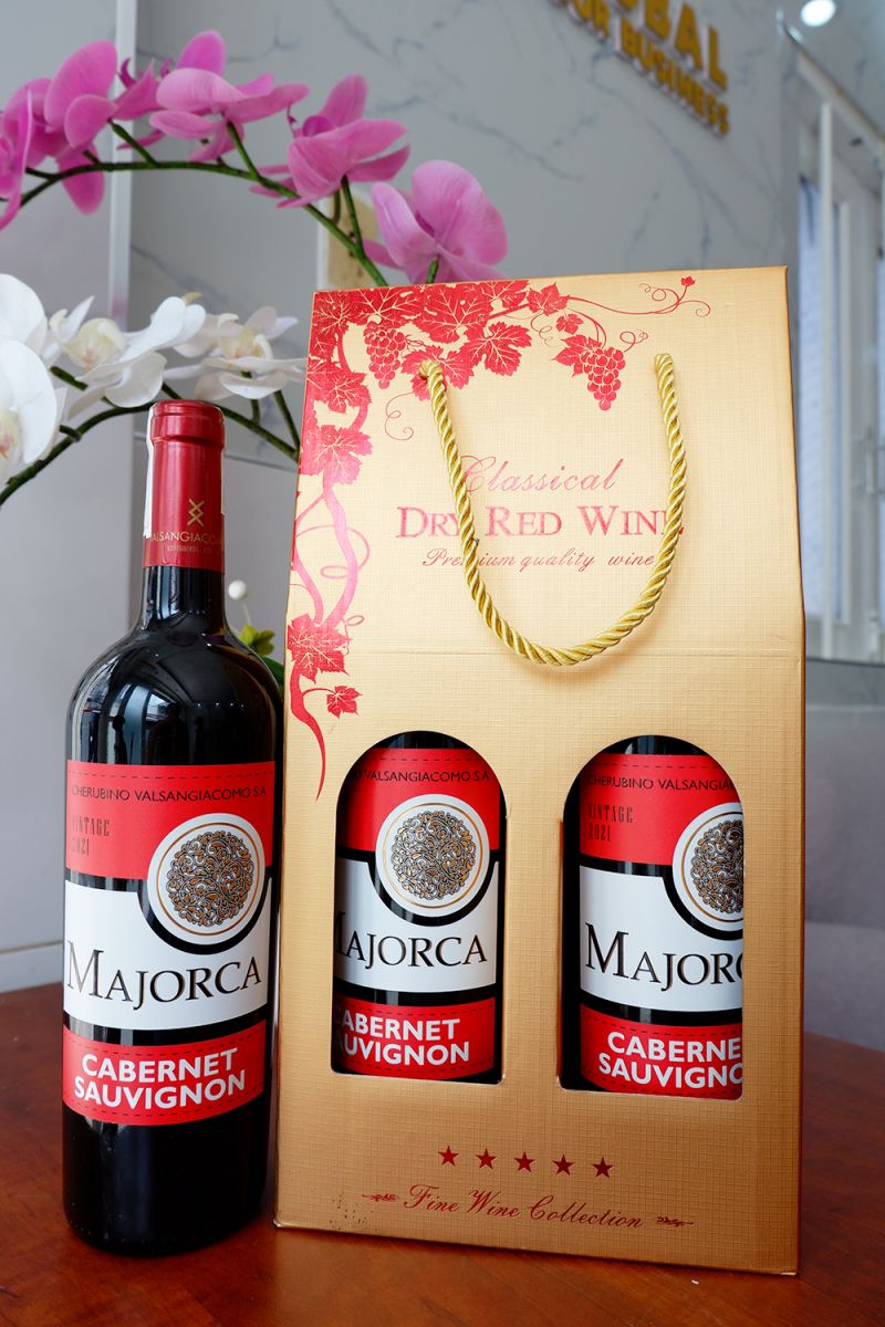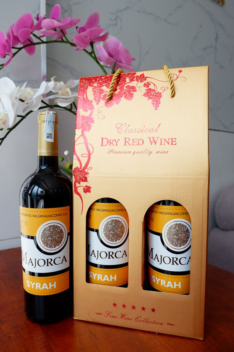 - 2 chai rượu vang Tây Ban Nha Majorca (có 3 nhãn xanh - đỏ - vàng để khách hàng lựa chọn).