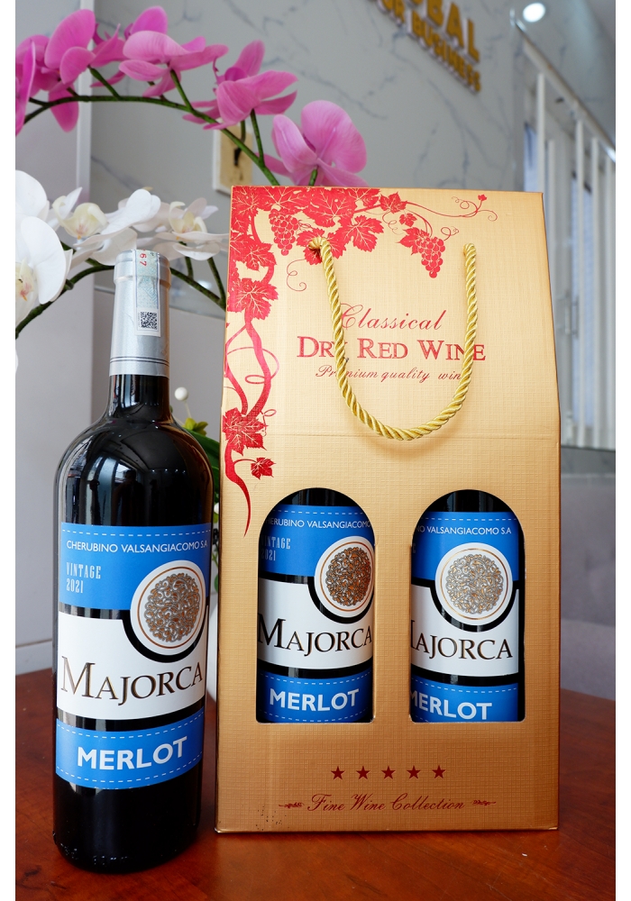 - Trên mỗi set quà tặng rượu vang 2 chai vang Tây Ban Nha Majorca có thể in logo, tên doanh nghiệp theo yêu cầu làm món quà tặng sang trọng gửi đến đối tác, khách hàng, bạn bè thân thiết.