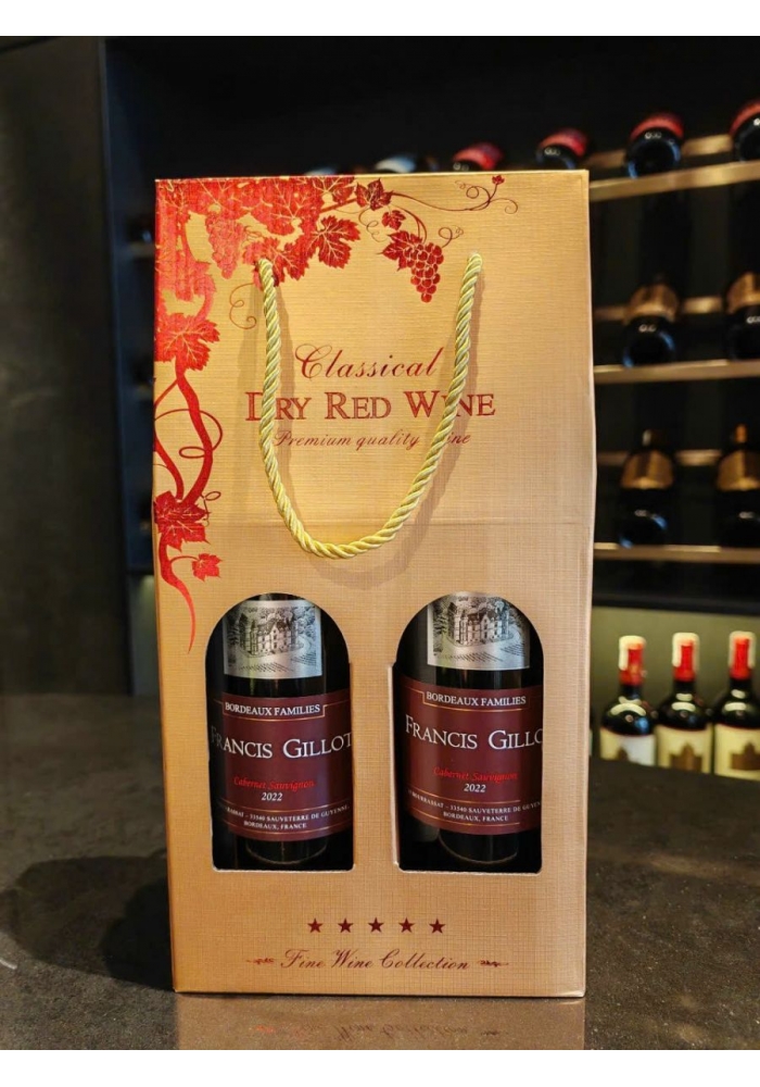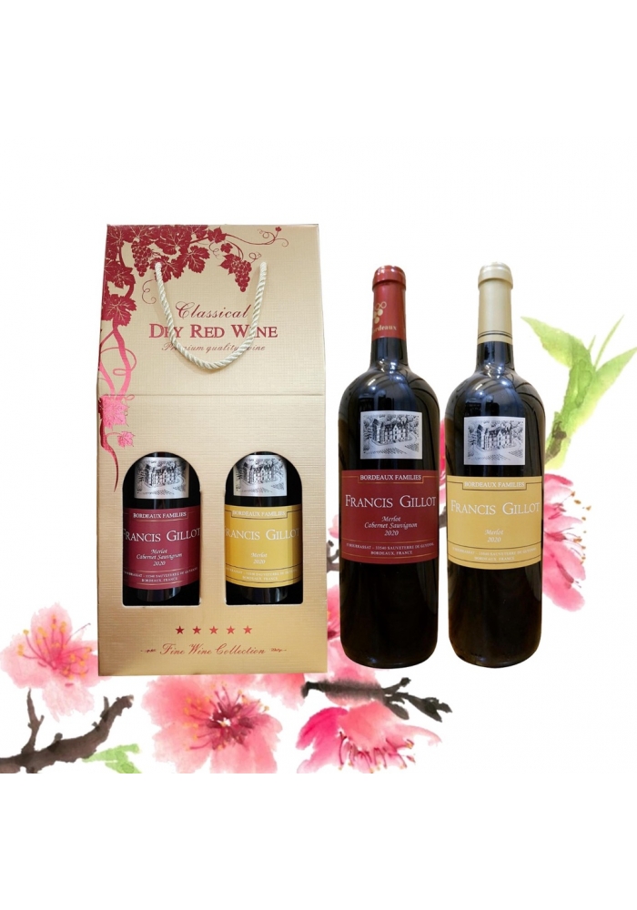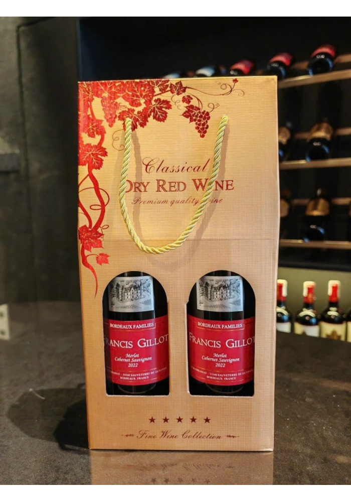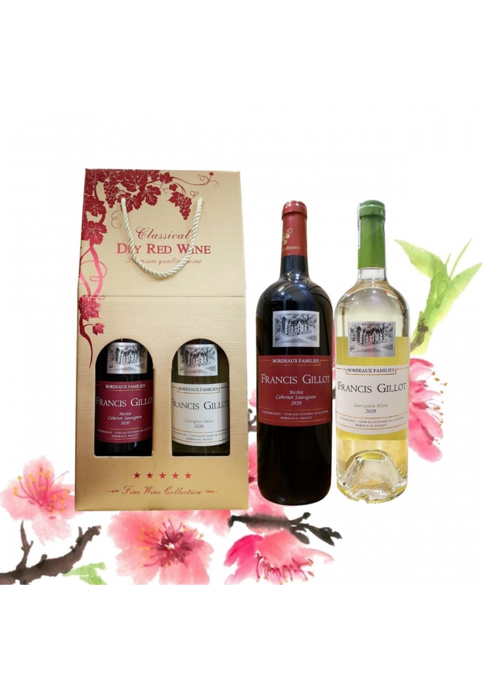 - 2 chai rượu vang Pháp Francis Gillot (set vang đỏ, set vang trắng hoặc mix các nhãn với nhau).