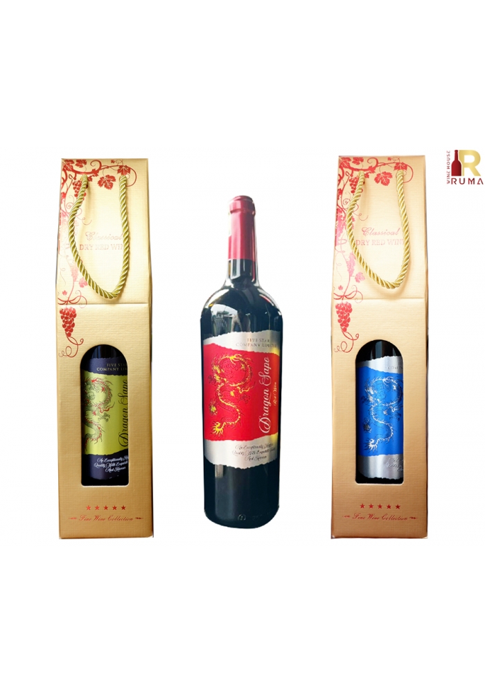 Quà tặng túi giấy ép kim 1 chai rượu vang Dragon