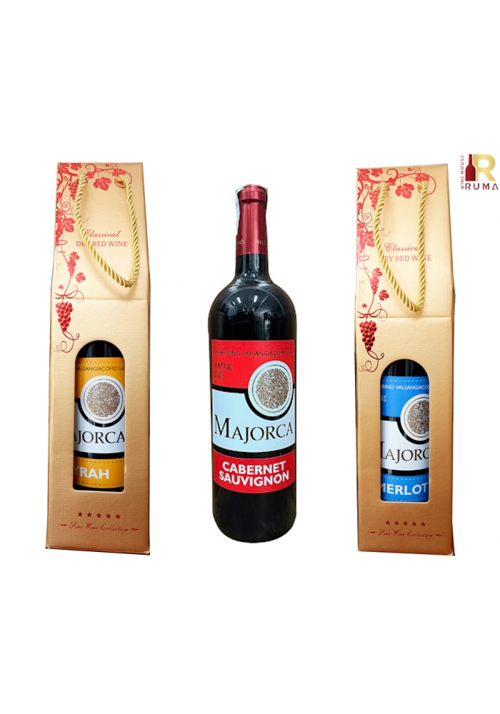 Hình thức set quà tặng túi giấy ép kim 1 chai rượu vang Majorca: