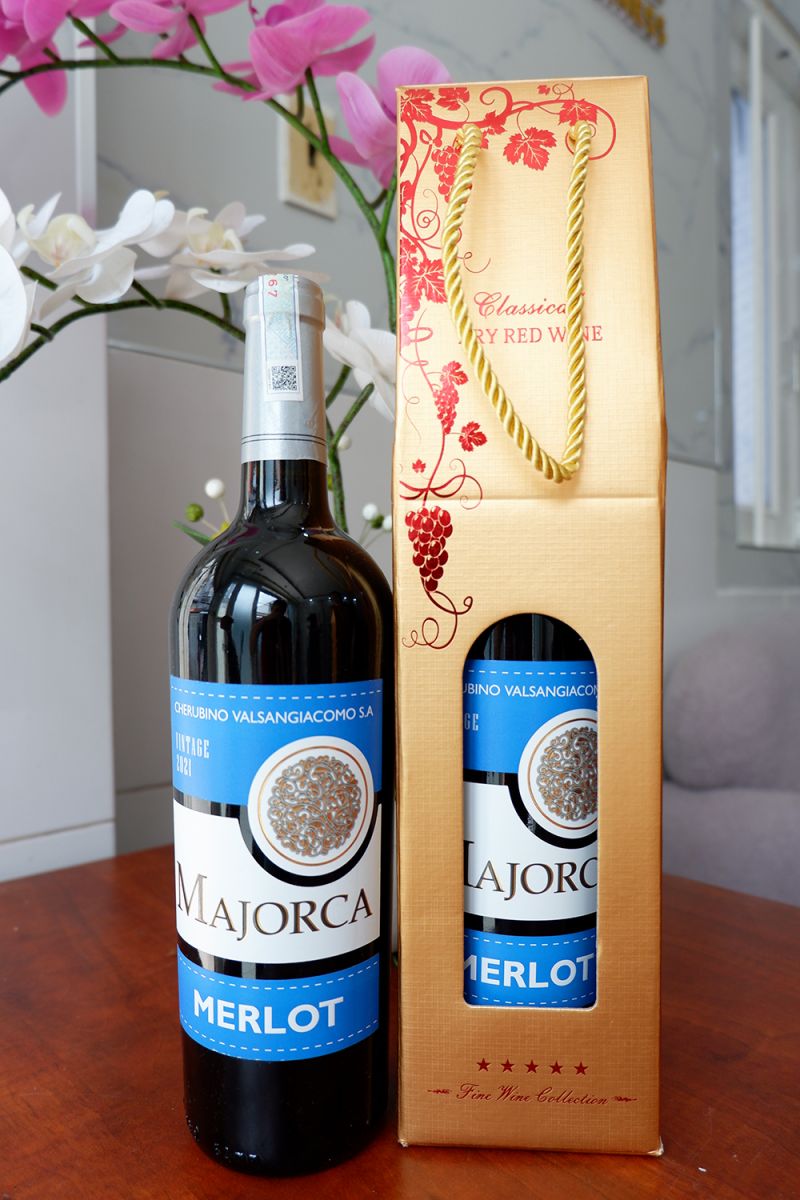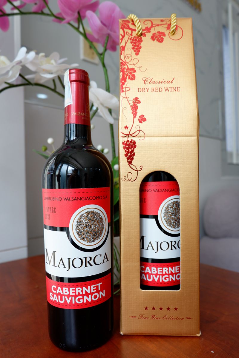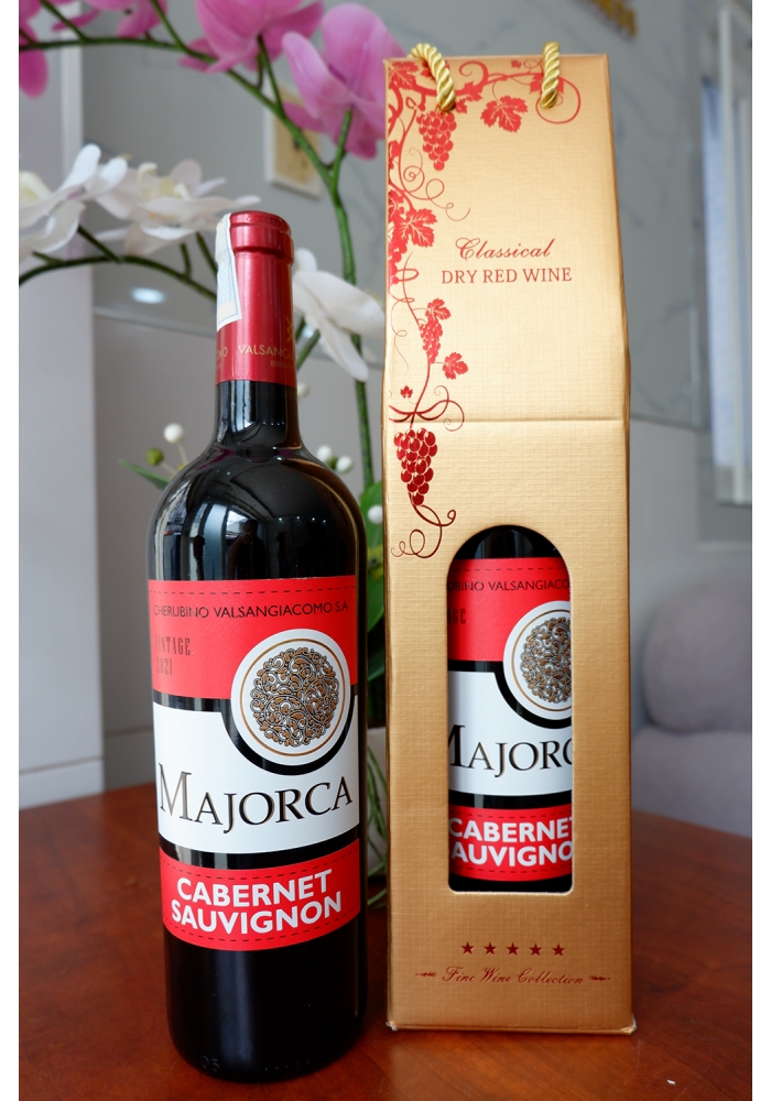 - 1 chai rượu vang Tây Ban Nha Majorca, 13.5% (nhãn màu xanh, đỏ hoặc vàng).