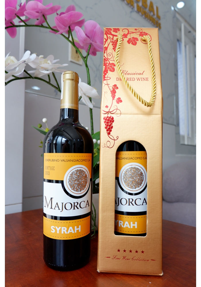 Quà tặng túi giấy ép kim 1 chai rượu vang Majorca
