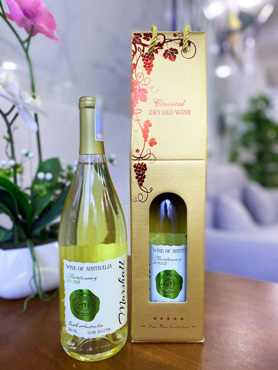 Hình thức set quà tặng túi giấy ép kim 1 chai rượu vang Marshall trắng: