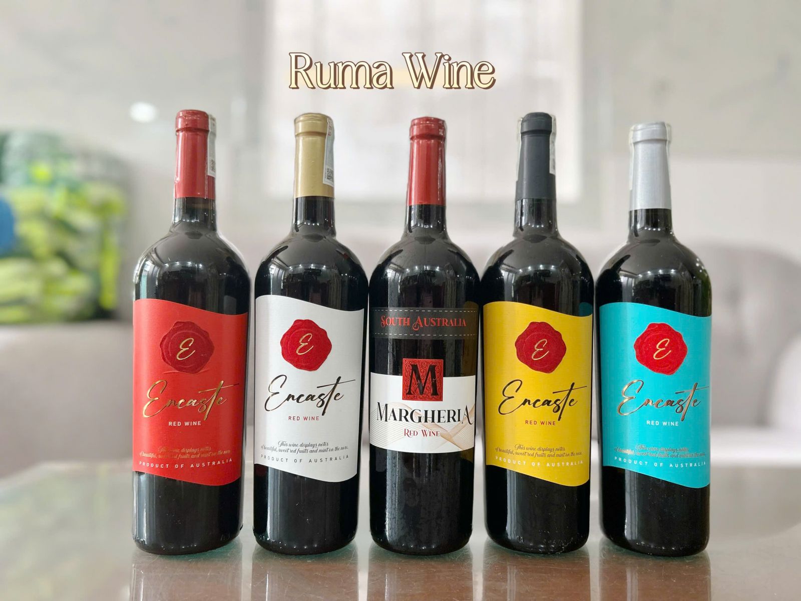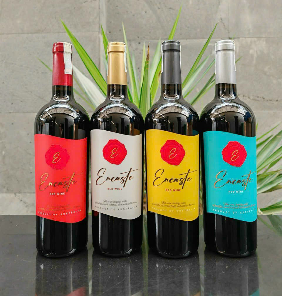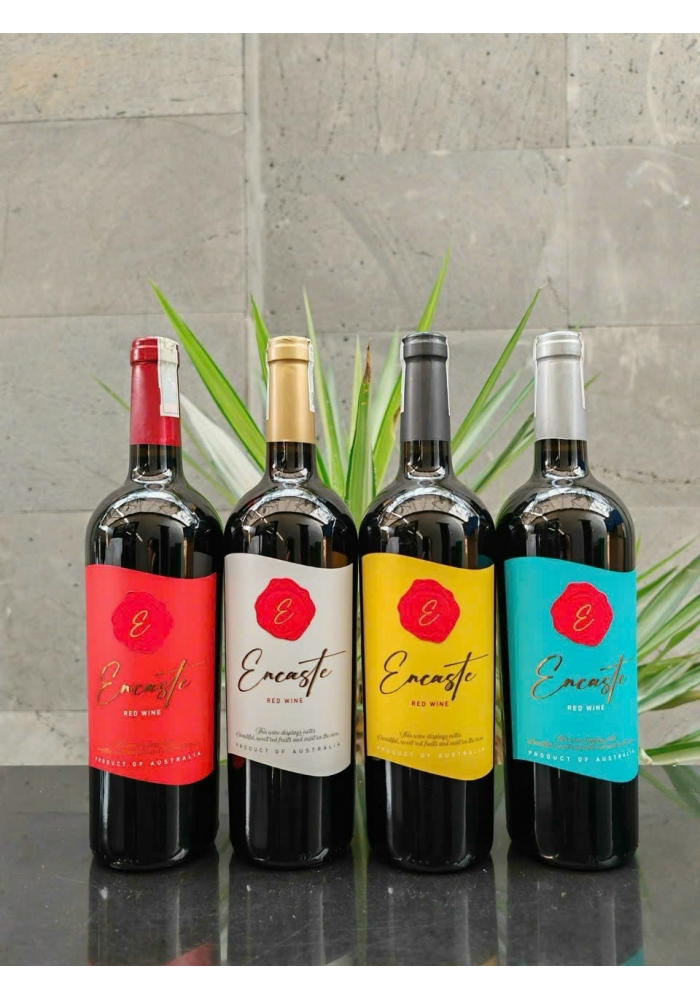 1. Vang Encaste: nhãn đỏ - vàng - xanh - trắng