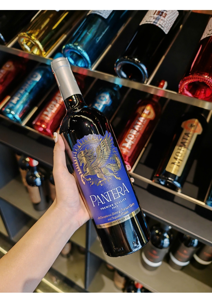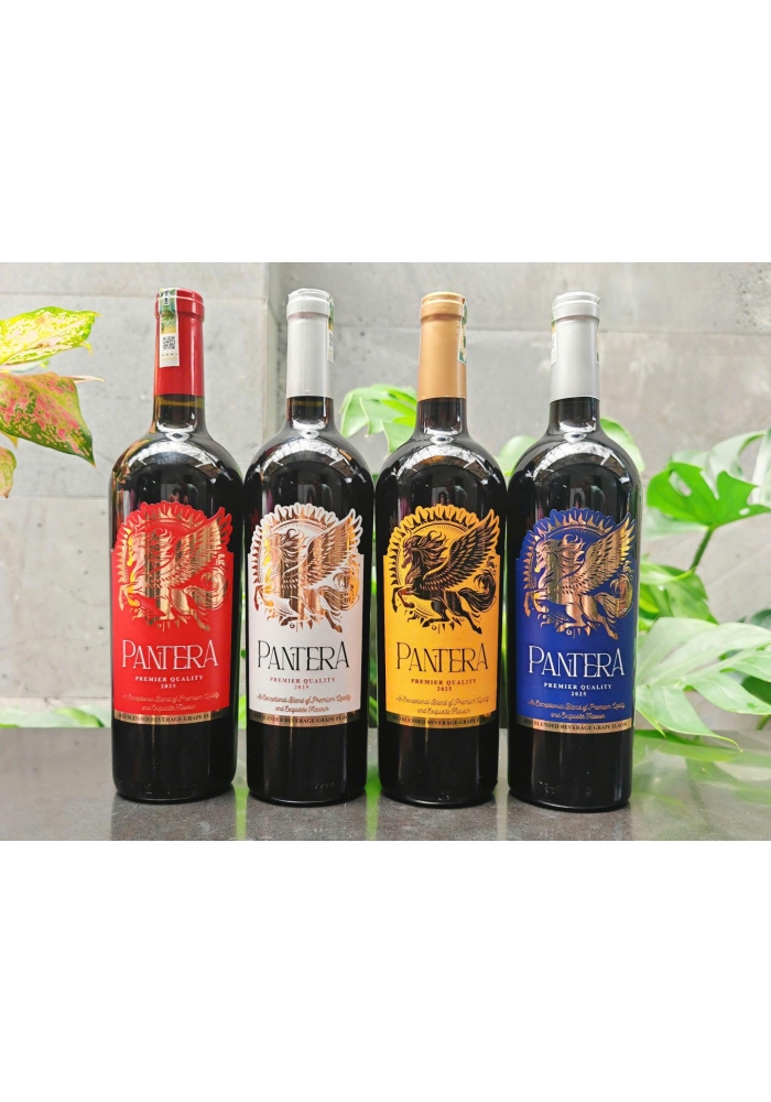 Mẫu mã thiết kế: rượu vang Pantera là một trong số các dòng vang siêu phẩm năm 2025 của hạng mục rượu vang Việt Nam. Pantera được làm từ giống nho Cabernet Sauvignon với thiết kế nhãn chai 4 nhãn 4 màu để dễ dàng phối hợp gói quà bắt mắt, là sự lựa chọn phù hợp cho khách hàng vào các dịp lễ, tết. Thiết kế chai vang tuy cầu kỳ nhưng khá tinh sảo, biểu tượng ngựa vàng tượng trưng cho sức mạnh, tốc độ và sự kiên trì, mang ý nghĩa về sự thành công, tài lộc, giàu sang phú quý, là món quà tặng rượu vang nhiều ý nghĩa.
