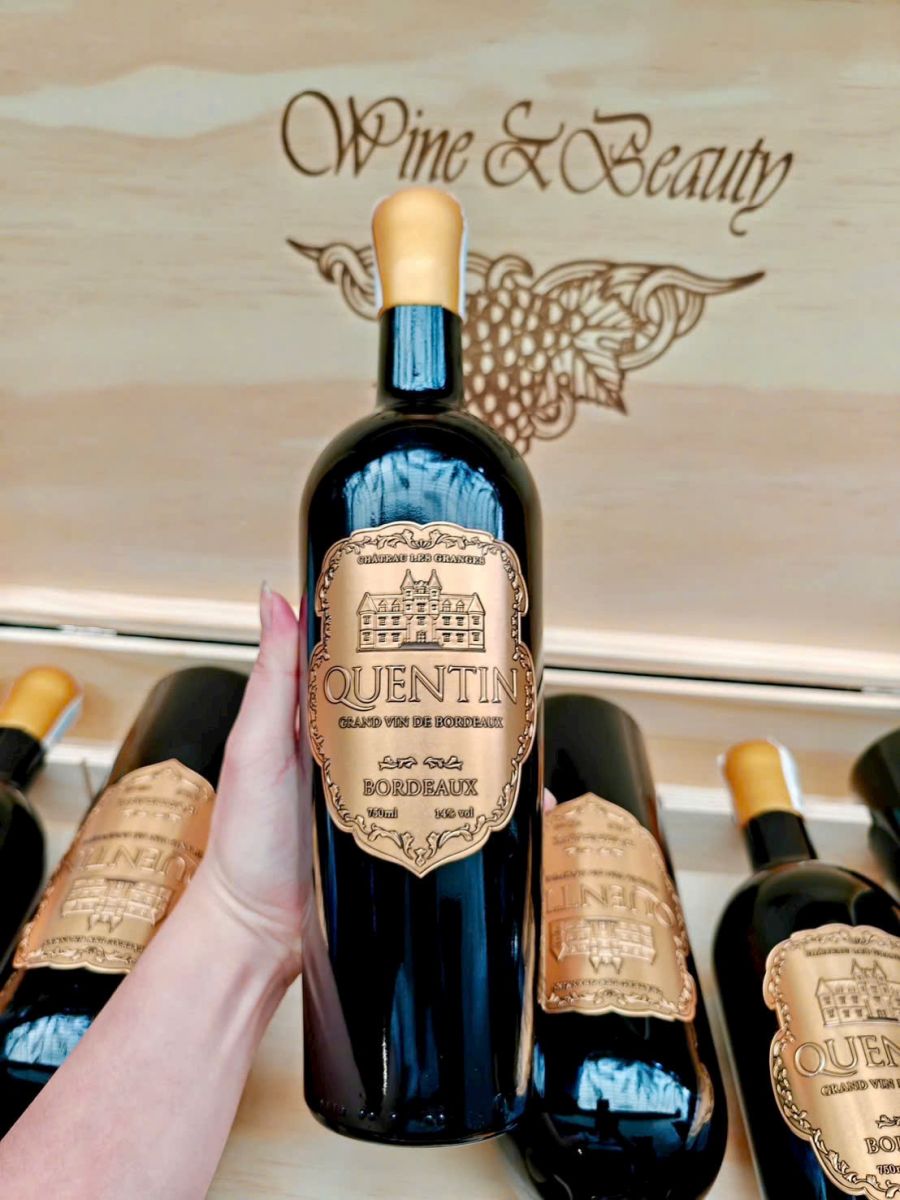 Mẫu mã thiết kế: Rượu vang Pháp Quentin được làm từ giống nho thơm ngon bậc nhất nước Pháp. Quentin có thiết kế nổi bật với nhãn vàng và chữ nổi bật, vừa sang trọng, quý phái mà cũng rất thu hút ánh nhìn.