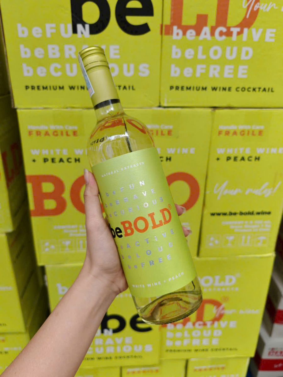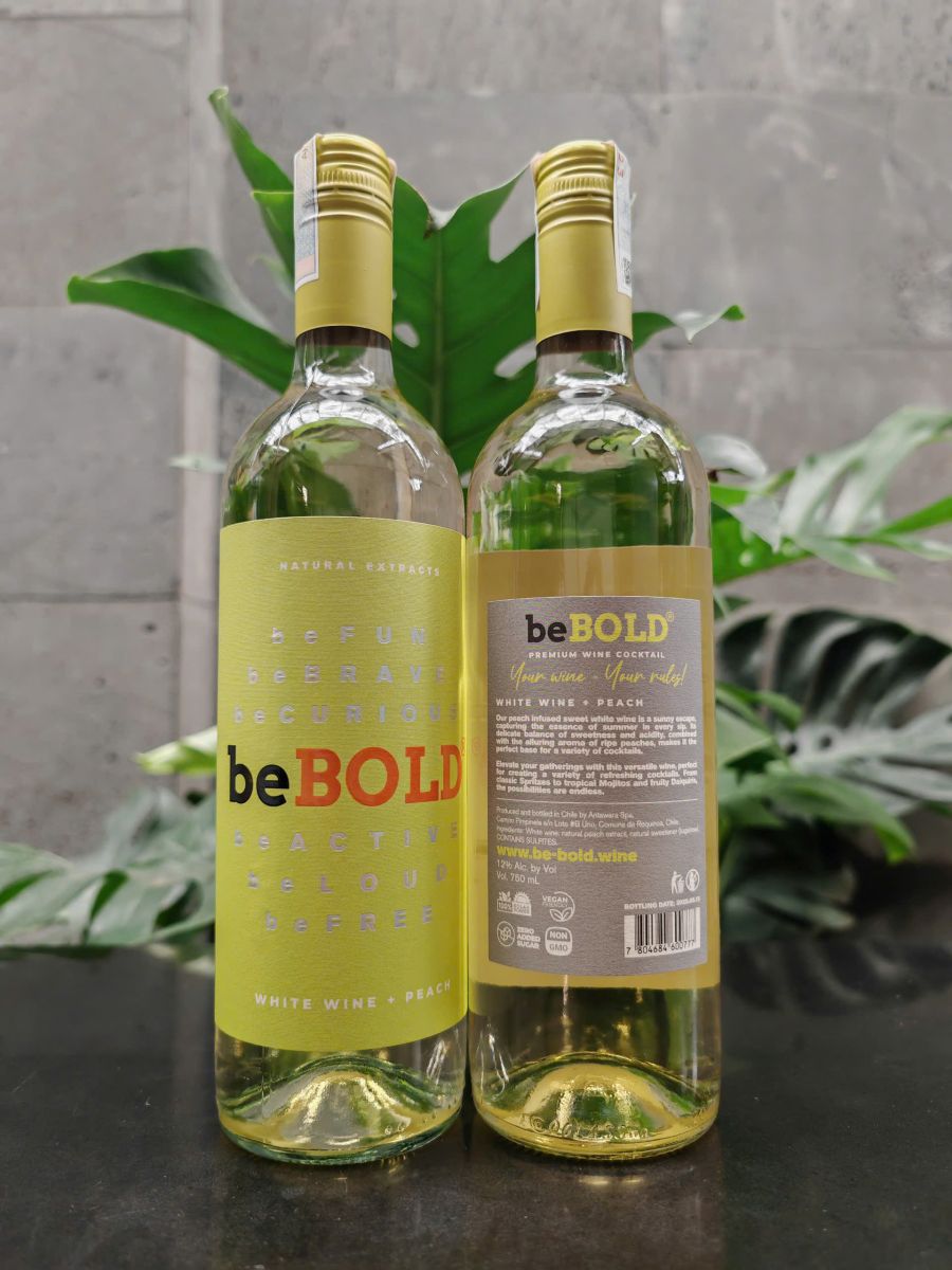 - Mẫu mã thiết kế: Rượu vang trắng Chile BeBold là dòng vang trắng ngọt được nhập khẩu nguyên chai từ Chile, làm từ giống nho Blanc nổi tiếng kết hợp với quả đào trắng hảo hạng nhất. Thiết kế chai vang đơn giản, nhẹ nhàng, tinh khôi với tông màu trắng xanh chủ đạo, nhờ vậy mà vang trắng BeBold được lựa chọn để làm các set quà tặng rượu vang vào các dịp lễ tết.