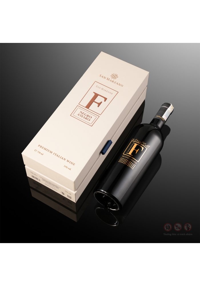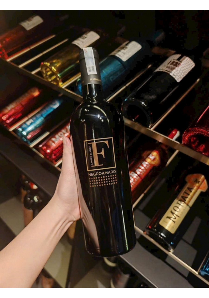 Mẫu mã thiết kế: Vang F gold Limited Edition là phiên bản đặc biệt dành cho các tín đồ rượu vang cao cấp nói chung và thương hiệu San Marzano nói riêng. Thiết kế chai tuy đơn giản nhưng toát lên được sự sang trọng, đăng cấp với tông màu đen tuyền chủ đạo, nổi bật trên nền chai là chữ nổi vàng, là sự lựa chọn hoàn hảo để làm quà biếu bạn bè, đối tác, quà tặng doanh nghiệp cao cấp, thể hiện được sự tín nhiệm, tinh tế của người tặng dành cho người được tặng.