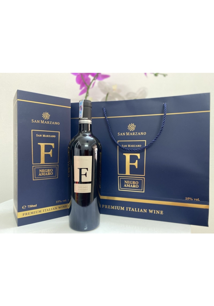 Mẫu mã thiết kế: Vang F Negroamaro hay còn lại là vang chữ F - thuộc dòng rượu vang đỏ thượng hạng, đẳng cấp, được tinh chế từ những trái nho ngon nhất vùng Salento. Với thiết kế màu đen tuyền với chữ F đổi bật trên nền phông bạc trang nhã mang đến sự đơn giản nhưng vô cùng sang trọng, quý phái của dòng vang Ý. Cũng là điểm nhấn cho những thượng khách sành vang dễ nhớ đến mẫu rượu vang này.