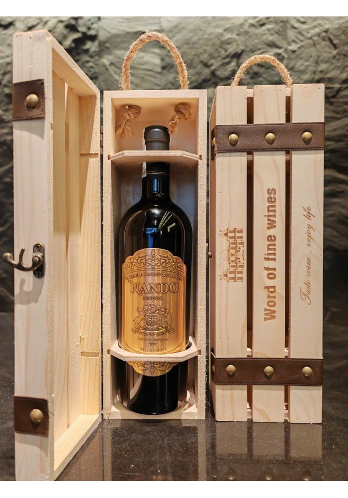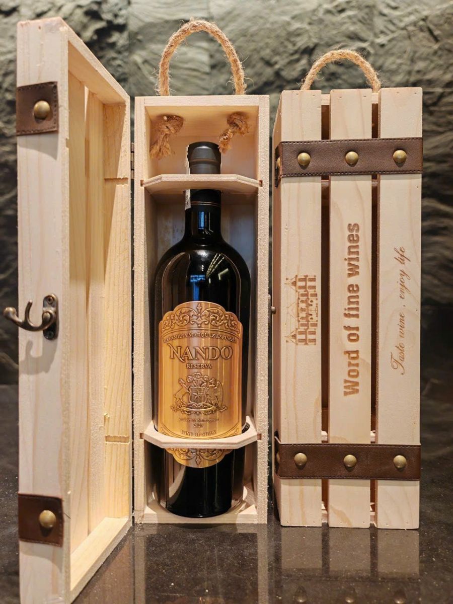 Quà tặng hộp gỗ 1 chai vang Chile Nando