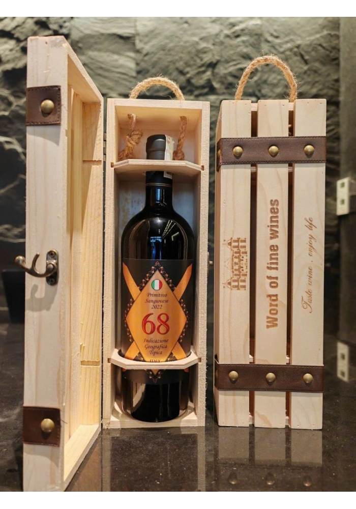 Set quà tặng hộp gỗ 1 chai vang Ý 68