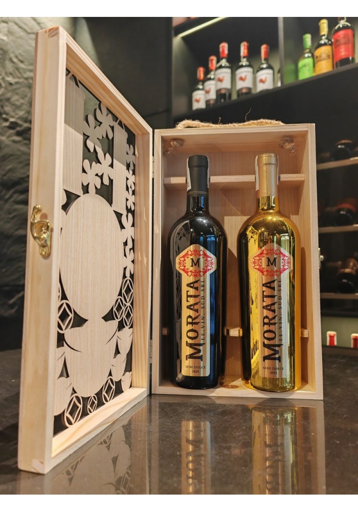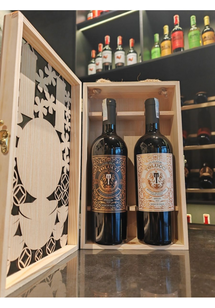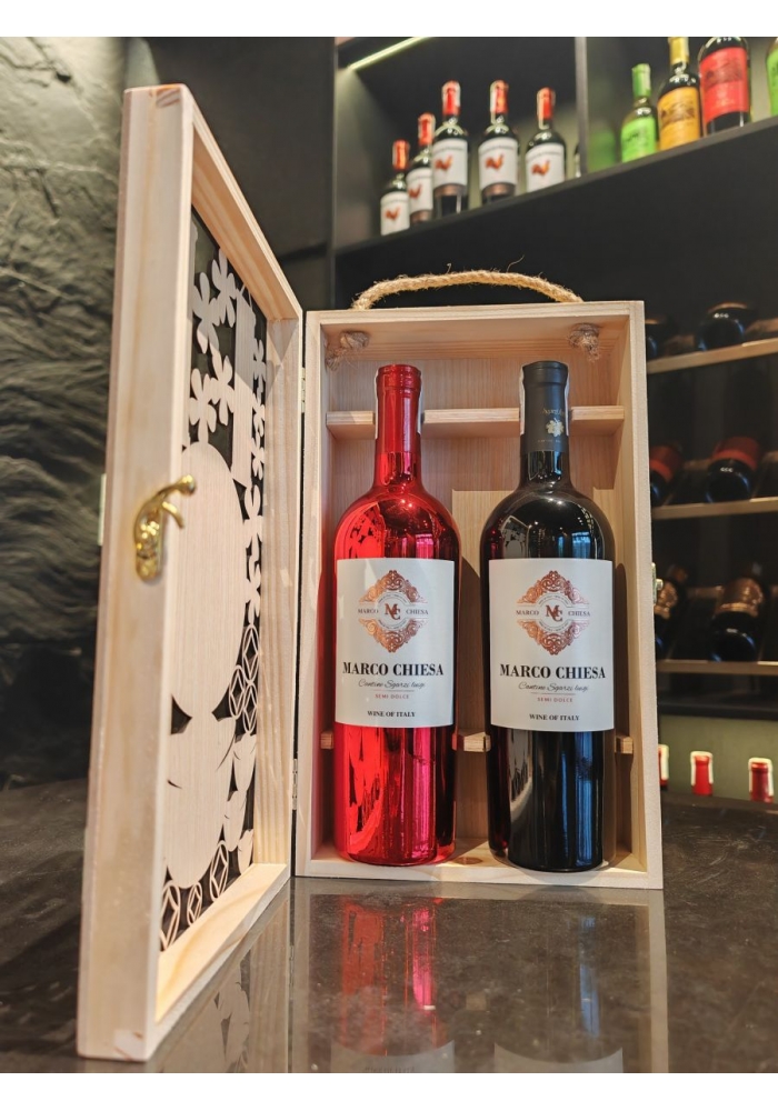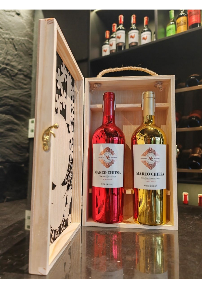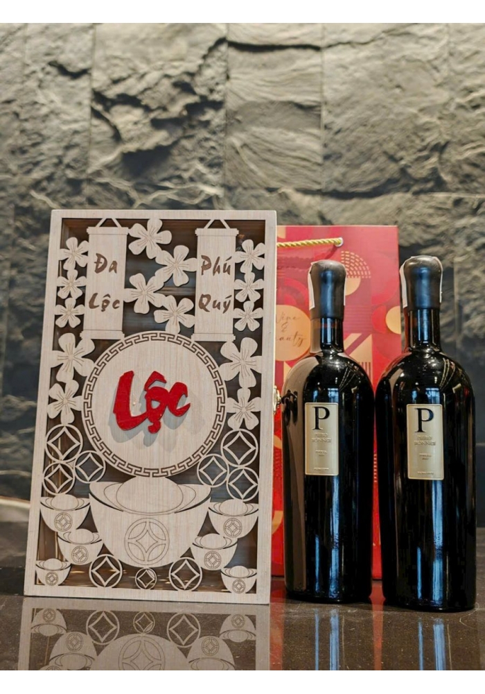 - Set quà tặng bao gồm: hộp chữ "Lộc" + 2 chai vang được lựa chọn theo phân loại + túi giấy đỏ đựng ngoài.