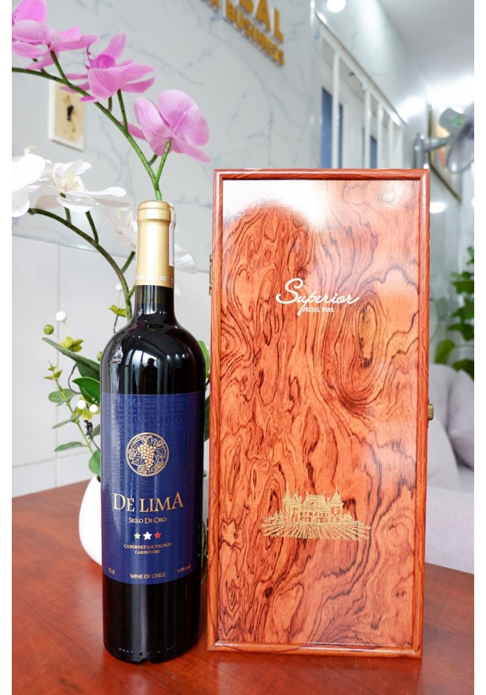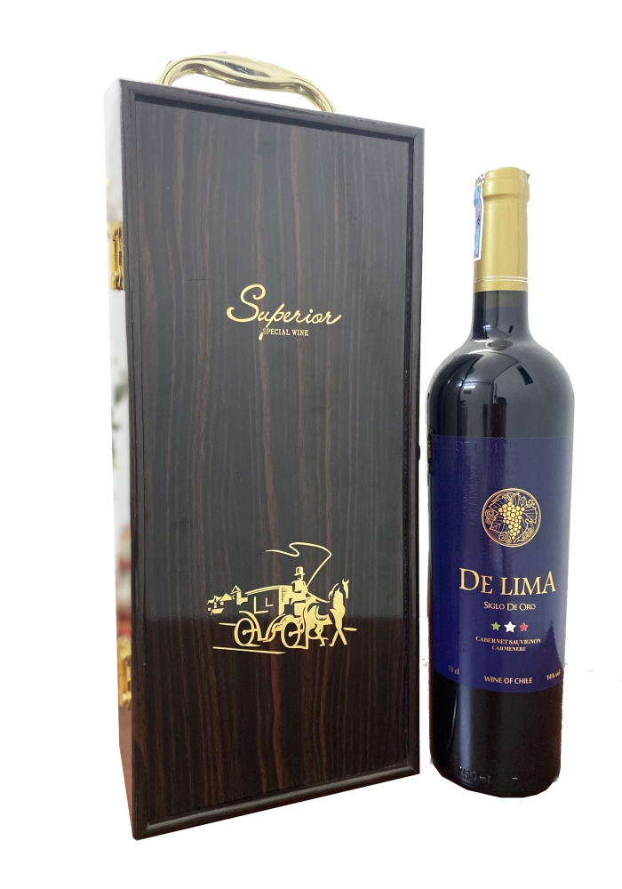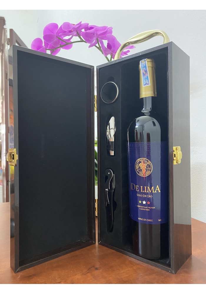 Set quà tặng tết hộp sơn mài 1 chai rượu vang Chile De Lima