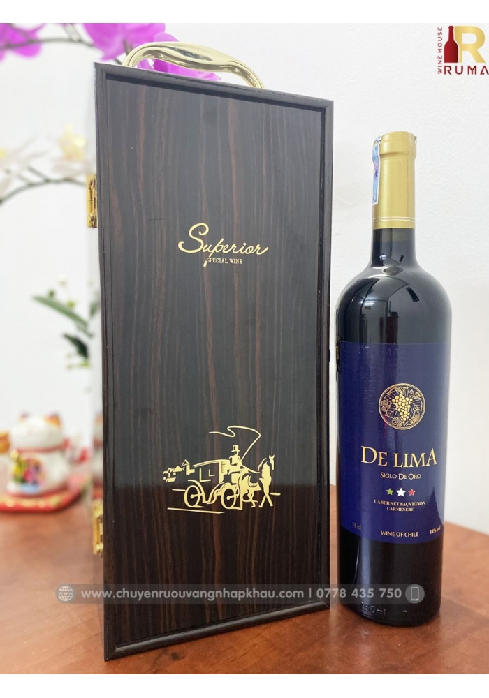 Thông tin set quà tặng tết hộp sơn mài 1 chai rượu vang Chile De Lima:
