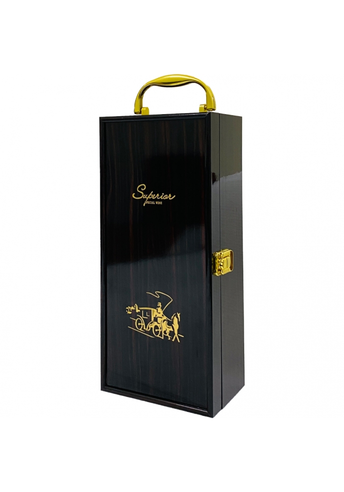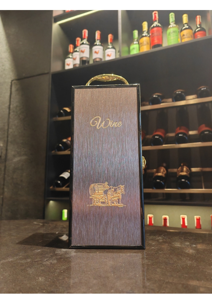 - 1 hộp đựng rượu vang bằng gỗ sơn mài cao cấp. Kích thước: Hộp đơn: 35 x 11 x 11 cm. Bộ phụ kiện kèm theo gồm có: khui rượu, dụng cụ rót rượu và vòng đệm cổ chai.