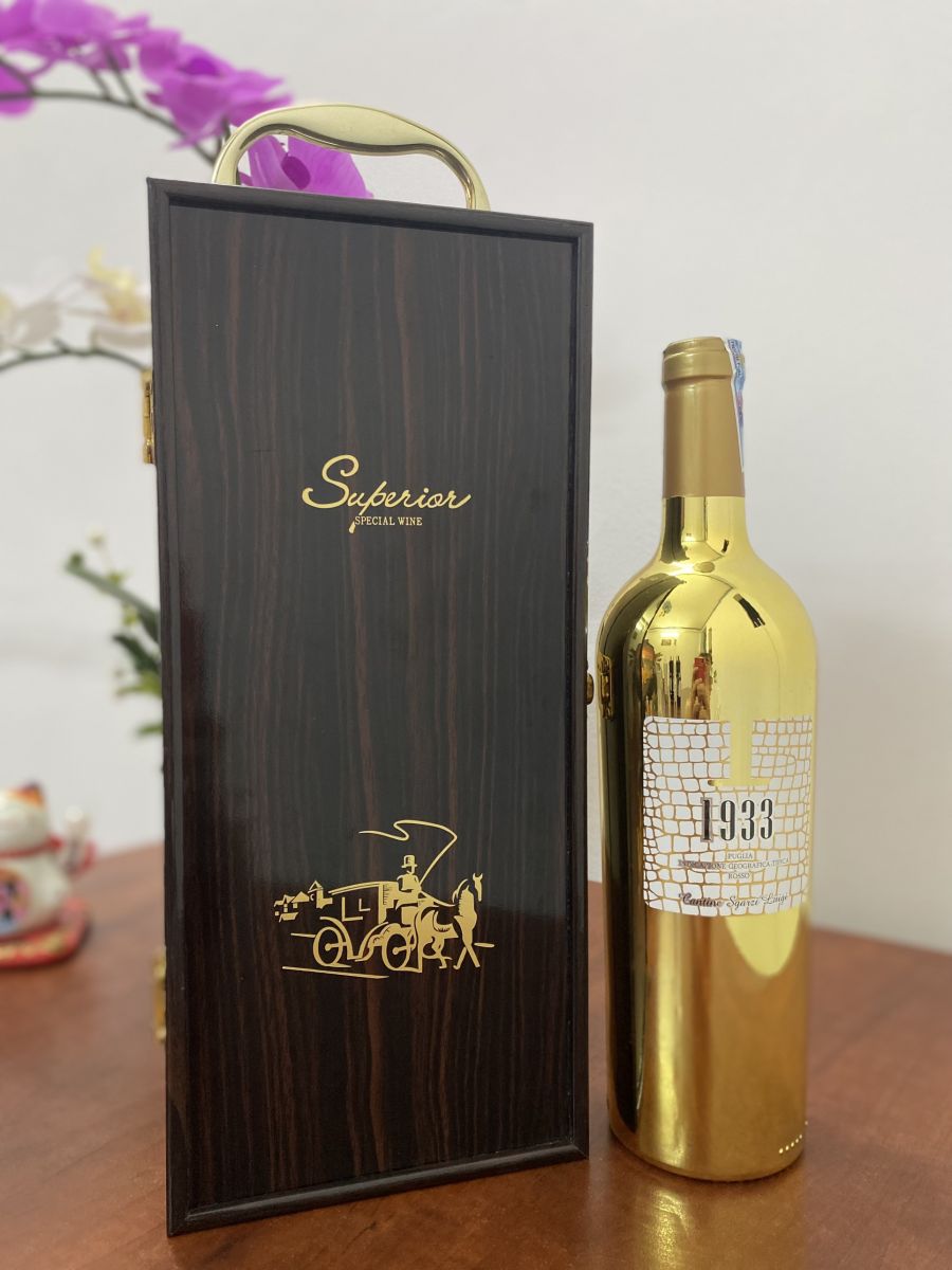 Set quà tặng tết hộp sơn mài 1 chai rượu vang Ý 1933 Topaz