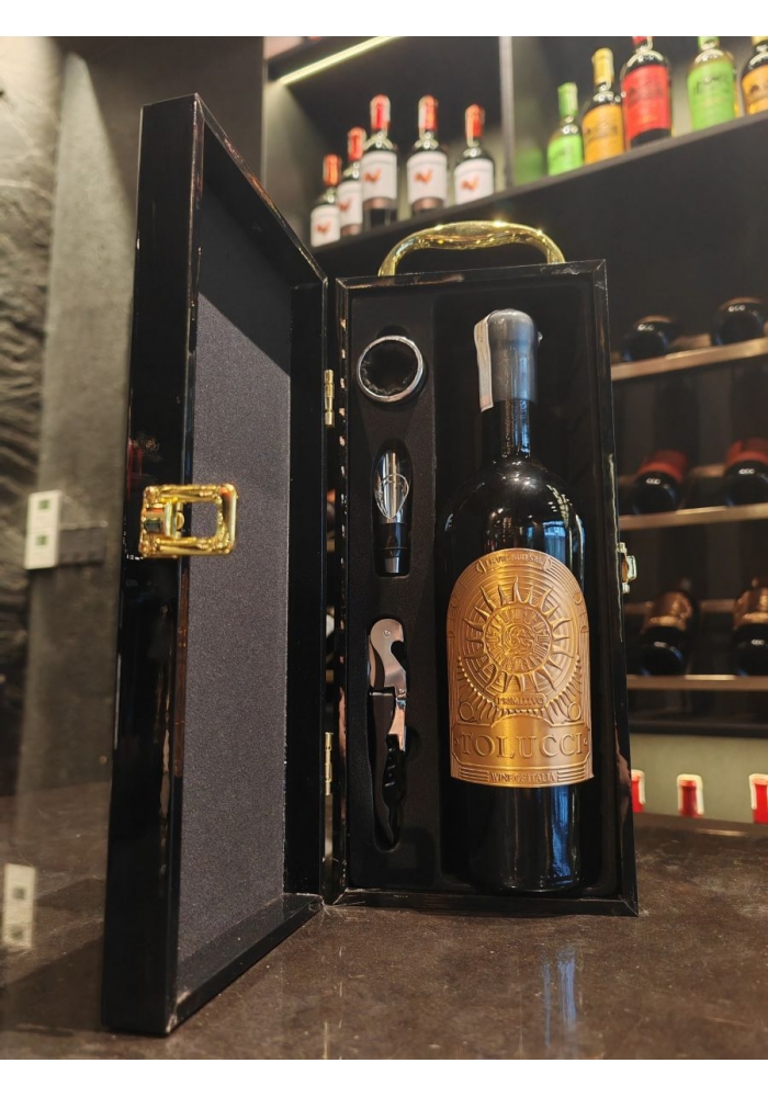 Set quà tặng tết hộp sơn mài 1 chai rượu vang Ý Tolucci 17 gồm: