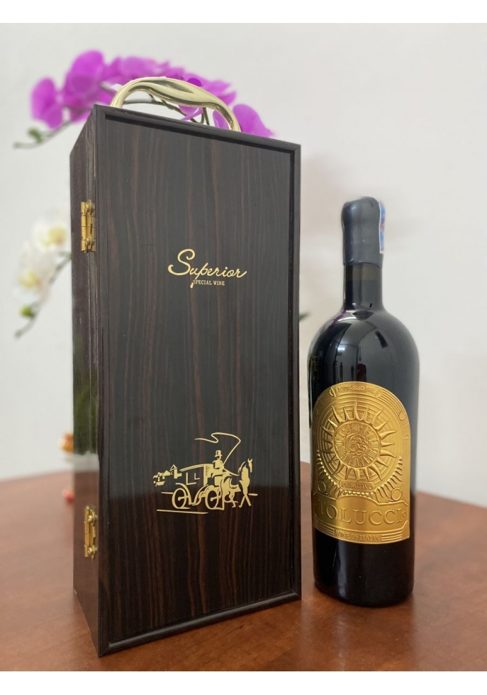 Thông tin set quà tặng tết hộp sơn mài 1 chai rượu vang Ý Tolucci 17: