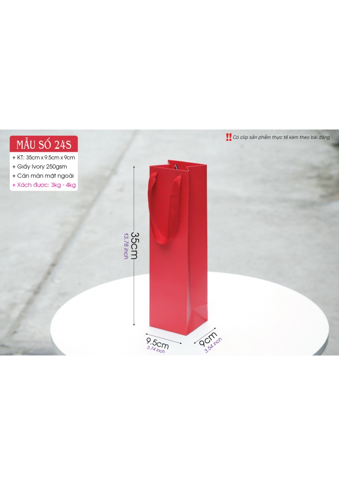 + Túi giấy đựng được 1 chai rượu vang 750ml, chai lọ sản phẩm có hình trụ đường kính phù hợp.
